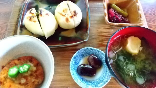 おやきとお味噌汁。